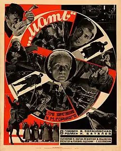 Mother (Russian: Мать, Mat) is a 1926 Soviet drama film directed by Vsevolod Pudovkin.[1] It depicts the radicalization of a mother, during the Russian Revolution of 1905, after her husband is killed and her son is imprisoned.[2] Based on the 1906 novel The Mother by Maxim Gorky, it is the first installment in Pudovkin's "revolutionary trilogy", alongside The End of St. Petersburg (1927) and Storm Over Asia (aka The Heir to Genghis Khan) (1928).[3]