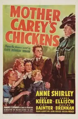 Mother Carey's Chickens is a 1938 American drama film starring Anne Shirley and Ruby Keeler. The film was directed by Rowland V. Lee and based upon a 1917 play by Kate Douglas Wiggin and Rachel Crothers, which in turn was adapted from Wiggin's Mother Carey's Chickens.
