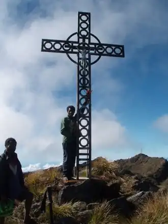 Mount Albert Edward is a 3,990-metre-high (13,091 ft) mountain in the Wharton Range in Central Province, Papua New Guinea. The mountain consists of two peaks about 400 metres apart, a cross marks the top of the slightly higher western peak and a trig station marks the eastern peak. The mountain lies approximately 120 km north of Port Moresby.