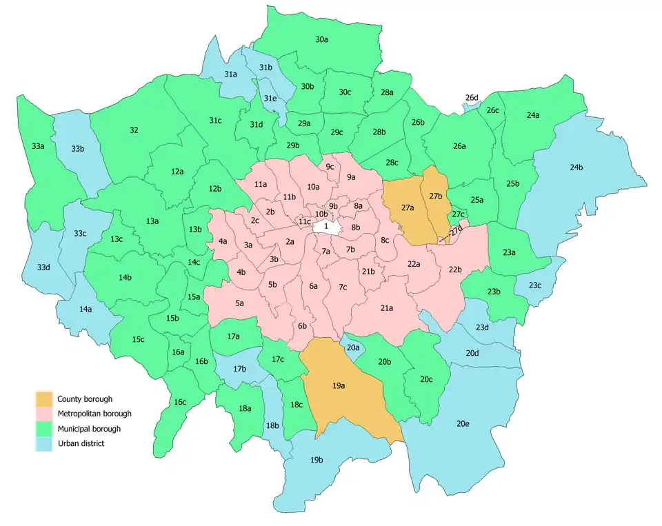 The Royal Commission on Local Government in Greater London considered the borough for inclusion in Greater London and in 1965 the municipal borough was abolished by the London Government Act 1963. Its former area was transferred to Greater London from Essex and combined with that of Hornchurch Urban District to form the present-day London Borough of Havering.