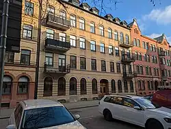 By sheer coincidence, Bengt Hjalmarsson was arrested by the Malmö Police Authority for a separate crime on the afternoon of 8 January 1980, two months after the murders.[41][39] Hjalmarsson's mother had reported her son to the Helsingborg police regarding a burglary that occurred in her house on Bogesundgatan in Ramlösa on Christmas Eve 1979.[42] Hjalmarsson had stolen valuable books, an older mortar and pestle and flint axes.[43] Due to Hjalmarsson's uncooperative nature during the arrest, the police obtained a search warrant to his apartment on Kornettsgatan on 9 January.[44] During their initial search of the apartment, police found it "cluttered" with boxes stacked on top of each other.[2][45] Amongst things found in the apartment were a katana, a cardboard box with women's clothes, wigs and a leather whip, which "suggested an unnatural sexual deviation".[45] The police men present in the apartment noted a foul smell from the refrigerator, which was revealed to be six slabs of meat wrapped neatly in white fabric.[23][22][44][46] However, it was initially assumed to be spoiled venison or oxe meat, upon which the police diverted their attention elsewhere.[44][47] In addition to Hjalmarsson's mother's belongings, the police also found roughly 400 books belonging to the Malmö City Library worth over 100,000 Swedish kronor.[48][39][49]