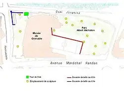 On the site there were severe design constraints. The imperatives were in respect to the immediate vicinity of the site. To the North-west a part of the Lesdiguieres wall dating from 1591 are recorded as being historical monuments. Nearby, the Tower of the Island dating from 1401, is also a register structure. To the east, the modified part of the wall built around 1888 must be conserved, forcing the integration of part of it inside the building. Finally to the east, access to a football stadium must to be retained during the development of the structure for an area with high urban population density.