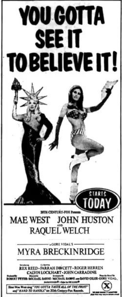 Myra Breckinridge was one of two films with an X rating to be released by 20th Century Fox in 1970 (the other being Beyond the Valley of the Dolls, which became a satirical camp classic).[22][23]