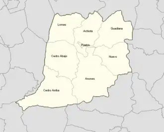 Like all municipalities of Puerto Rico, Naranjito is subdivided into barrios. The municipal buildings, central square and large Catholic church are located in a barrio referred to as "el pueblo".[10][11][12]
