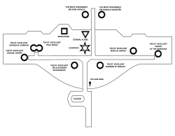Two monuments to historical figures were dedicated on 14 October 1999. The first of these honors Nanny of the Maroons, a female warrior of Asante descent who waged a guerrilla campaign against the British during the First Maroon War. Nanny's monument reproduces the sound of the abeng, a traditional instrument used by the fighters.[11] The second is dedicated to Samuel Sharpe, the leader of the Christmas Uprising (a.k.a. the Baptist War), a slave revolt that took place in 1831. Sharp's monument is shaped like a Greek cross, to honor his Baptist faith, and its corners are left open as a representation of freedom. Both of these monuments were designed by Compass Workshop Limited.[12]