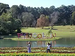 The National Kandawgyi Botanical Gardens (Burmese: ကန်တော်ကြီး အမျိုးသား ရုက္ခဗေဒ ဥယျာဉ်; formerly National Botanical Gardens) is a 177 hectare botanical garden located in the Alpine town of Pyin U Lwin (formerly Maymyo), Burma, situated at an elevation of 1000 metres (3,605 ft) and 69 km (43 mi) by road from Mandalay.[1] The current official name is National Kandawgyi Garden.