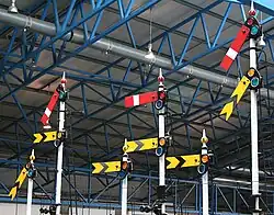 Railway semaphore signals in the Museum's Great Hall