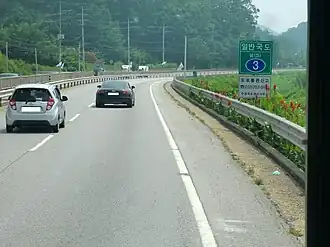 National Route 3 is a national highway in South Korea connects Namhae to Chosan. Due to the separation of Korean peninsula, it de facto ends in Cheorwon by now. It was established on 31 August 1971.[1]