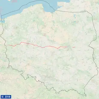 National road 92 (Polish: droga krajowa nr 92)[2] is a route belonging to Polish national roads network, which serves as an alternative route parallel to motorway A2. The road has one lane per direction on the majority of its length. Before the A2 motorway was constructed, it had served as the main connection between Warsaw, Poznań and the Polish-German border as DK 2; because of this, the route is sometimes referred to as "stara dwójka" (lit. "old two").[2]
