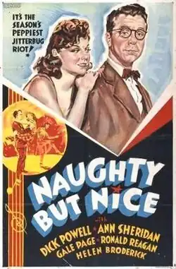 Naughty but Nice is a 1939 Warner Bros. musical comedy film directed by Ray Enright and starring Dick Powell, Ann Sheridan, Gale Page, Ronald Reagan and Helen Broderick. The original story and screenplay were written by Richard Macaulay and Jerry Wald, and the film includes songs with music by Harry Warren and lyrics by Johnny Mercer, as well as music adapted from Bach, Beethoven, Liszt, Mozart, Schumann and Wagner. Sheridan's original voice is heard in most of her songs, but for the song "In a Moment of Weakness", her voice was dubbed by Vera Van.