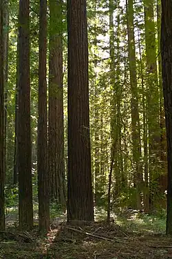 Because the region now covered by the park was heavily logged in the 19th century,[5][6][7][8] only second-growth redwood trees remain. However, two groves of old-growth redwoods may be seen in nearby Hendy Woods State Park, upriver a few miles southeast on Route 128.[3]