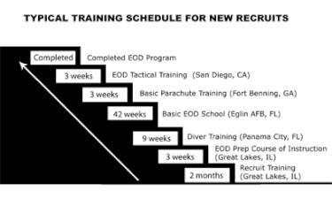 • EOD Tactical Training (21 days, EOD Training and Evaluation Unit ONE, San Diego)[7] (See enlisted training)