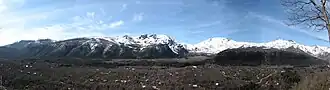 Nevados de Chillán is a group of stratovolcanoes located in the Andes of Ñuble Region, Central Chile, and is one of the most active volcanoes in the region. It consists of three overlapping peaks, 3,212 m (10,538 ft) Cerro Blanco (Volcán Nevado) in the northwest and 3,089 m (10,135 ft) Volcán Viejo (Volcán Chillán) in the southeast, with Volcán Nuevo in the middle. Volcán Viejo was the main active vent during the 17th-19th centuries, and the new Volcán Nuevo lava dome complex formed between 1906 and 1945, eventually growing to exceed Viejo in height by the mid-1980s.