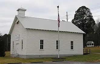 The church was founded in 1851.[2] The church ceased operation in 1942 when the land was taken over by the U.S. federal government for Manhattan Project facilities.[3] A large stone marker was erected behind the church in 1949 to commemorate the church and its congregation. It is inscribed "The church having been left in extended session in 1942, this monument was dedicated and the final church session closed at Memorial Day services May 29, 1949."[2] The New Bethel Baptist Church is the only remaining structure from the pre-World War II community of Scarboro, Tennessee.[4]