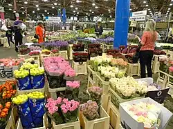 The Flower Market, which offers flowers, plants, foliages, sundries and interior decorations from the UK and from around the globe, is visited by 75% of florists in London, many of whom place morning orders and return to restock during the day.[2] The Flower Market wholesalers are open from 04:00 to 10:00 Monday to Saturday and the Fruit & Vegetable Market wholesalers trade from around 00:00 – 06:00 Monday to Saturday.