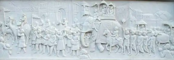 Pillar carving depicting Swaminarayan and Paramhansas -