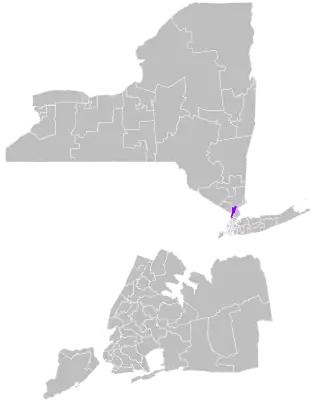 The district overlaps with New York's 16th and 17th congressional districts, and with the 88th, 89th, 90th, 91st, 92nd, and 93rd districts of the New York State Assembly.[5]