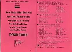 New York Film Festival Downtown was a New York-based film festival founded by Tessa Hughes-Freeland and Ela Troyano in 1984.[1] With independent and "positively avante-garde" programming,[2] it came to prominence in the East Village art scene and ran for five years, ending in 1988.