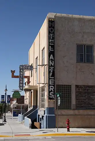 The district lies along either side of West Main Street, also known as US Route 16, near its intersection with what is now the BNSF Railway. US 16, as the Black and Yellow Trail, was a primary route linking the tourist centers of the Black Hills and Yellowstone National Park. The district was influenced by a series of fires that destroyed a number of buildings, which were replaced with newer buildings in styles such as Streamline Moderne, Beaux-Arts, and Mission styles, complementing pre-existing late Victorian architecture.[2][3]
