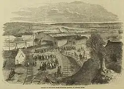 Neyland Railway Station, in 1856. Illustrated London News, Ebenezer Landells