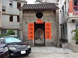 The entrance gate of the village was built in 1862 for defense purposes. A niche on the ground floor houses the Earth God statue and another honoring Kui Xing is located on the cockloft. The former is the guardian of the village whilst the latter is for worship of expecting official position and success in literature.[3] The entrance gate is listed as a Grade II historic building.[6]