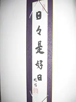 Nichinichi kore kōnichi (Japanese: 日々是好日) (Chinese: 日日是好日; pinyin: Rìrì shì hǎorì) is a Zen Buddhist proverb. It has been presented by some Zen masters (notably, Kōdō Sawaki and his disciple Taisen Deshimaru).[1] It was a favorite saying of the avant-garde composer John Cage, featured in Song Books (1970) as "Solo for Voice 64". It is also known as Unmen's Good Days (雲門好日) and Unmen's 15 Days (雲門十五日).[2][3][4]