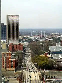North Avenue is a major avenue in Atlanta, Georgia that divides Downtown Atlanta from Midtown Atlanta. North Avenue stretches continuously in Atlanta from Candler Park in the east, across Interstate 75 & Interstate 85, along the southern boundary of the Georgia Institute of Technology, to Joseph E. Lowery Boulevard (formerly Ashby Avenue) just southwest of Georgia Tech, where it ends. North Avenue passes through the neighborhoods of Poncey-Highland, Old Fourth Ward, and Midtown Atlanta.