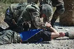 A Moldovan Soldier takes a mock bandit into custody as part of an exercise designed to help Moldovans sharpen their peacekeeping skills in advance of a 2012 NATO evaluation.