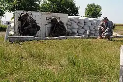 A North Carolina National Guard Soldier observes Soldiers of the Moldovan army show off their capabilities as a unit before their NATO evaluation.