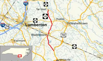 North Carolina Highway 131 (NC 131) is a primary state highway in the U.S. state of North Carolina. It connects the city of Bladenboro to Fayetteville, via NC 87, and Whiteville, via US 701.