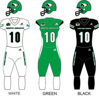 The North Dakota Fighting Hawks represent the University of North Dakota, competing as a member of the Missouri Valley Football Conference (MVFC) in the NCAA Division I's Football Championship Subdivision. From 1973 to 2008, they played in the NCAA's NCAA Division II, winning the national championship in 2001. From 1955 to 1972, they competed in the NCAA's College Division where they participated in and won three bowl games.