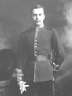 Dalrymple-Hamilton was gazetted to the Scots Guards in 1902.[1] As he succeeded his father in 1906 as laird of Bargany in the village of Dailly, South Ayrshire,[3] he spent most of his career on the reserve officers list, with the exception of the First World War. He was a member of the Ayrshire Territorial Force Association since its inception in 1908 and served both as vice-chairman and chairman.[1]