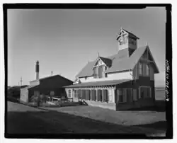 While Native Americans most likely used the island for fishing, the first permanent settlement took place in the 1830s on the island's east end at Fort Caswell.[5] Now utilized as a Christian retreat and conference center, during the Civil War the fort defended Confederate positions on the North Carolina coast and subsequently served as an army training ground in World War I and a patrol/ communications base in World War II.[6] In 2013, along with the Fort Caswell Rifle Range constructed during WWI,[7] it was designated as a National Historic District.[8]