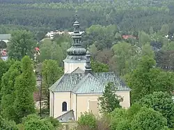 Near the castle in Olsztyn is the location of the parish church of St. John, built in 1722-26 by Jerzy Lubomirski. The church has the shape of a cross, with arms marked by two chapels. Inside there is a Baroque painting The Baptism of Christ, and three mummified bodies from the 18th century. At local cemetery there are bodies of hundreds of people, murdered by Germans during World War II. Furthermore, there are ashes of hundreds of Soviet POWs, shot by Germans in 1941–1944.