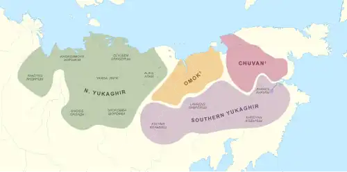 Omok is an extinct Yukaghir language of Siberia, part of a dialect continuum with two surviving languages, also referred to as an eastern dialect of Tundra Yukaghir.[2] It was last spoken perhaps as late as the 18th century. A wordlist of Omok, as well as its sister language Chuvan, was recorded in 1821 by Fyodor Matyushkin.[3]