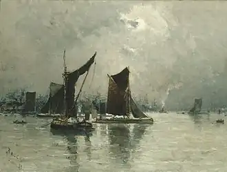 On the Thames is a late 19th-century oil painting by American artist Frank Myers Boggs. Done in oil on canvas, the work was one of numerous paintings of the River Thames produced by Boggs, who operated an art studio on the river's bank in London. The painting is currently in the collection of the Metropolitan Museum of Art.[1]