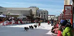 Dog racing in Fairbanks was temporarily suspended from 1942 to 1945 due to World War II.[2] The sport resumed in 1946 with the inauguration of the Open North American Championships. Initially the race was a four-day event with three race segments of 18 miles (29 km) followed by a 20 miles (32 km) race segment along the Chena River and Tanana River.[3][2] In 1953, the race moved to Creamer's Field Migratory Waterfowl Refuge, where it continues today. The Alaska Dog Mushers Association (ADMA) was founded in 1948 to promote the sport and organize the ONAC.[3] The 2020 race was cancelled due to the COVID-19 pandemic.[4] In 2025, the ONAC hosted its 79th year.[5]