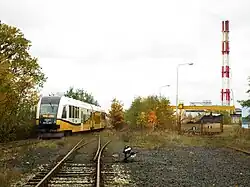 There is a train station in the village.