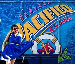It was first brewed in 1900 when three Germans, Jorge Claussen, Germán Evers and Emilio Radostits opened a brewery,[1] the Cerveceria del Pacífico, in Mazatlán.[2] Its label includes a picture depicting a lifesaver encircling a ship's anchor superimposed over the port's lighthouse hill, known locally as "Cerro del Crestón."[3] In Mazatlán, the beer is available in three different size bottles: "cuartitos" (180 ml; 6 US fl oz), "medias" (350 ml; 12 US fl oz), and "ballenas" (950 ml; 32 US fl oz).[3]
