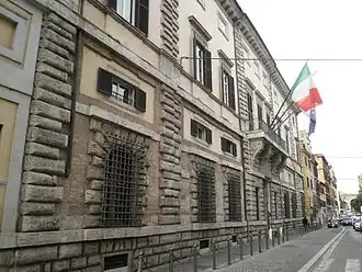 In 1552 the palace was sold to Cardinal Giovanni Salviati and soon after its property was transferred to his brother Bernardo Salviati, Prior of the Order of Malta; in 1569 it was refurbished by Nanni di Baccio Bigio, who completed the elevation to its present aspect and enlarged the rear. The edifice was the residence of Cardinal Fulvio Giulio della Corgna, nephew of Pope Julius III, until his death in 1583: in 1571 his famous warrior brother Ascanio della Corgna, coming back from the battle of Lepanto, died in the palace.