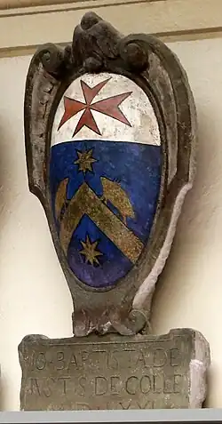 Amongst the sculptures are the Medici Coat of Arms and that of the Knights, flanked by the allegories of Religion and Justice by Stoldo Lorenzi (1563). The upper gallery of busts of the Grand Dukes of Tuscany (who were all also the Grand Masters of the Order) were added in the late 16th-early 18th centuries, sculpted by Ridolfo Sirigatti, Pietro Tacca and Giovan Battista Foggini. coat of arms found at palazzo della carovana. The double-ramp staircase was remade in 1821. The rear area is a modern addition (1928–1930) for the Scuola Normale Superiore di Pisa. Some halls of the interior house 16th-century paintings.