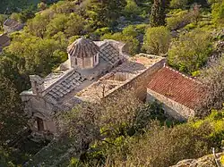 Paliachora (Παλιαχώρα), also known as Palaia Chora (Παλαιά Χώρα) and Palaiochora (Παλαιοχώρα) is an abandoned Medieval settlement on Aegina, one of the islands off the coast of Attica in Greece. Paliachora was the main centre of habitation on the island from the Middle Byzantine period until the beginning of the 19th century. It was built on a peak in the northern part of the island, above the monastery of Agios Nektarios,[1] next to the road from the city of Aigina on the west coast to Mesagros and the Temple of Aphaia in the east.[2] It has been nicknamed the "Mystras of Aigina."[3]