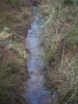 Palmer Creek was named after pioneer Joel Palmer; before, it was known as Smith Creek.[4][5] It flows through private agricultural lands and is highly denuded by residual pesticides.[6] Palmer Creek flows year-round because water from the Willamette River is diverted into the creek so it can be used for irrigation.[7]