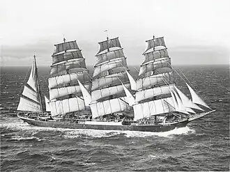 | Sail plan | Four-masted barque, 3,800 m² (40,900 ft²) of sails |