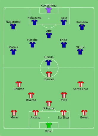 - ^ a b "Tactical Line-up – Last 16 – Paraguay-Japan" (PDF). FIFA.com. Fédération Internationale de Football Association. 29 June 2010. Archived from the original (PDF) on 5 July 2010. Retrieved 29 June 2010.
