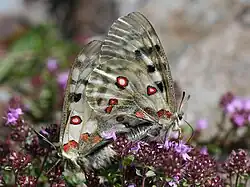However, these laws focus on the protection of individuals, rather than their habitat, and so may do little to mitigate the greatest threat that populations face.[8] Fortunately, there are a number of projects specifically working to save this vulnerable insect. A conservation programme in Pieniny National Park saved a subspecies of the Apollo butterfly that had declined to just 20 individuals in the early 1990s, through a combination of captive breeding and habitat protection.[20] In south-west Germany, conservationists are working with shepherds to ensure favourable conditions for the butterflies, which share their grassland habitat with sheep. For example, grazing periods have been shifted to avoid the Apollo butterfly larvae stage, which is vulnerable to being trampled.[21]