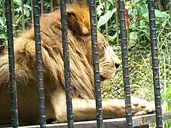 Kivú, the (now deceased) zoo's lion, in August 2016