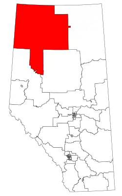 Four First Nations are located within the riding's boundaries: Beaver First Nation, Dene Tha' First Nation, Little Red River Cree Nation, and Tallcree First Nation.