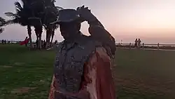 Sculpture of McAlpine with cockatoo on his shoulder at Cable Beach