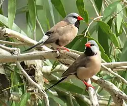 A pair of long-tailed grass finches